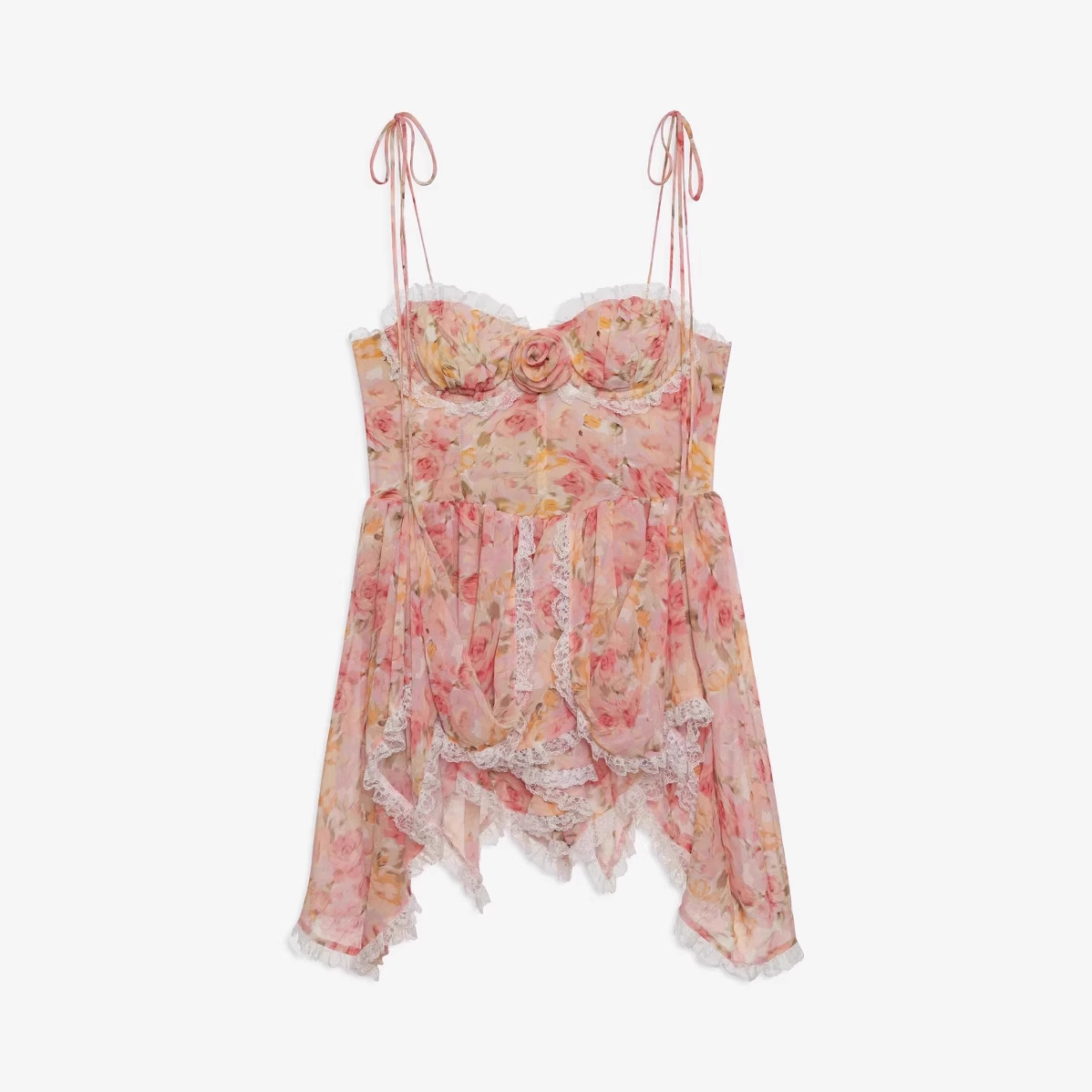 Vintage Lace Floral Spaghetti Strap Ruffled Hem Design A-line Party Dress HZ1024